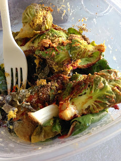 - Sometimes I'll make a creamy sauce (ex: blend together pine nuts/cilantro and lemon)