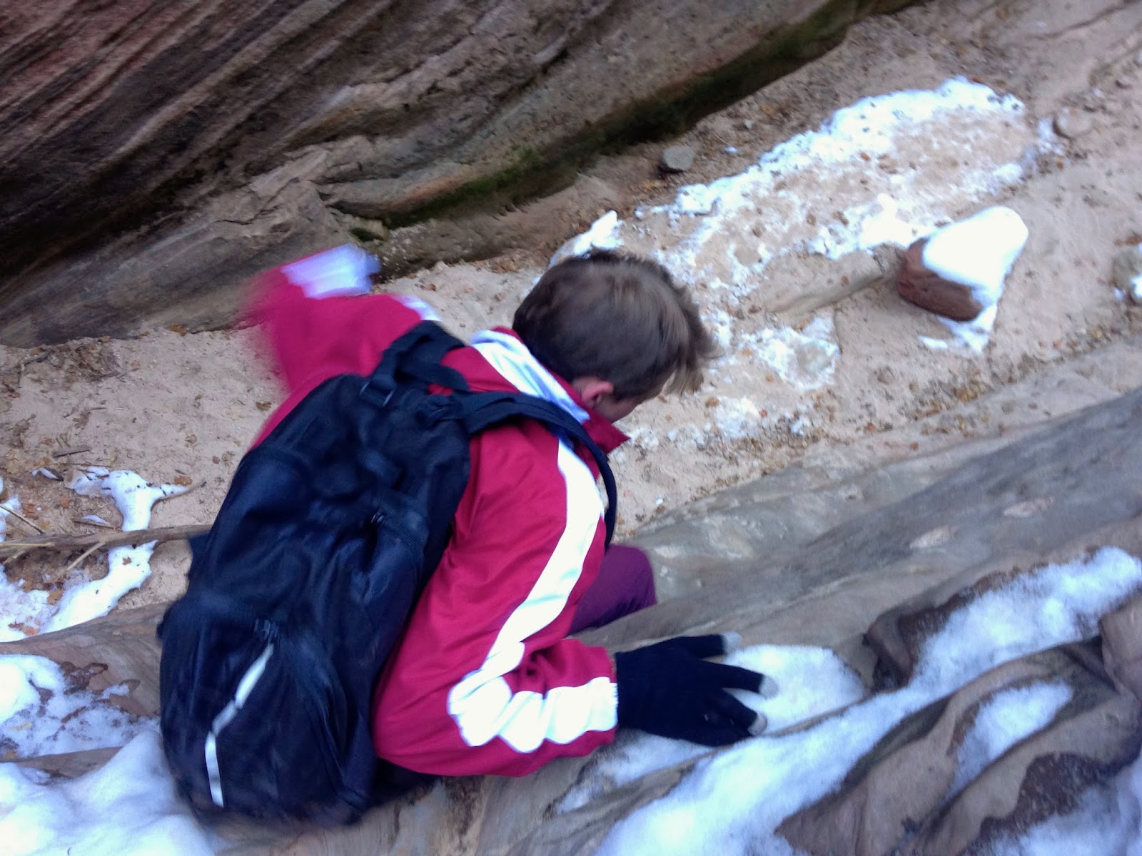| Literally had to use this 'snow jug' to rock climb over a wall |